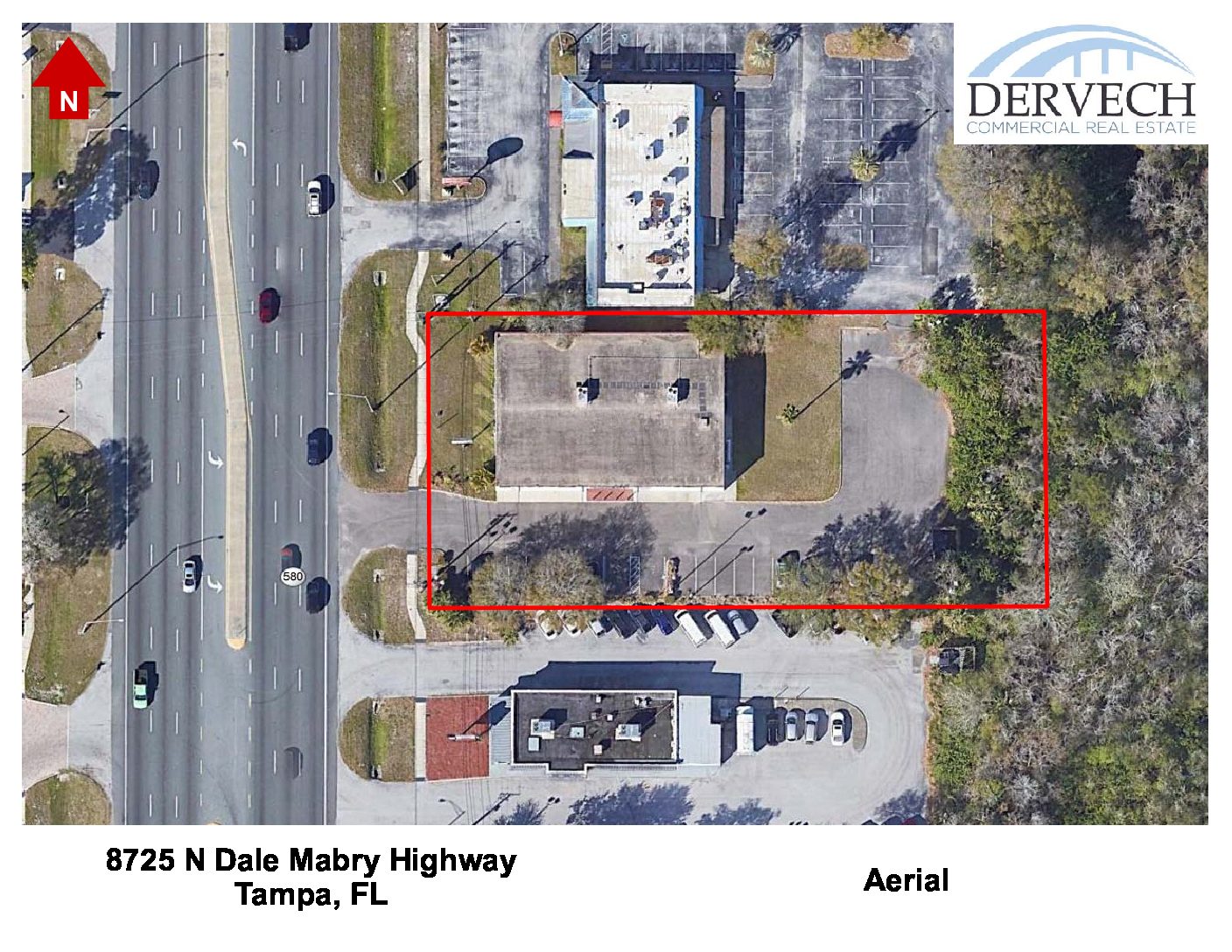 This vacant retail building is approx. 7,803 square feet on 0.89 acres, zoned commercial neighborhood. The property is located on the east side of Dale Mabry Highway, north of Waters Ave and south of Busch Blvd. The property is zoned Commercial Neighborhood (CN) and benefits from the many different uses allowed underneath this zoning designation. Dale Mabry is a heavily commuted main artery road connecting core Downtown Tampa to North Hillsborough County. The property benefits from a traffic count of over 62,000 cars daily on Dale Mabry Highway and over 44,000 cars daily from the Busch Blvd interchange directly to the north for a combined traffic count of over 106,000 cars daily. Woodies Wash Shack just recently closed on the abutting parcel to the north with plans to build a state-of-the-art car wash facility. The subject property will benefit greatly from the increased daily trips created by this new retail project.